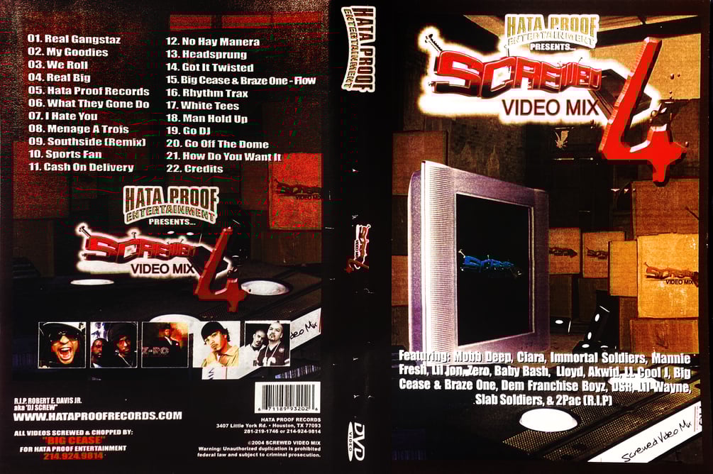 Step into the raw essence of the Texas underground with Screwed Video Mix 4 — a gritty, unfiltered ride through the streets, soundtracked by that unmistakable slowed-down, syrup-drenched H-Town flavor. Packed with rare Southern rap visuals, street anthems, and exclusive footage, this DVD is a time capsule from the golden era of screw culture. Every track hits heavy, every scene tells a story, and every moment drips with that real Hata Proof attitude.